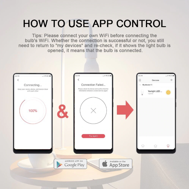 Светодиодная лампа Yeelight поддерживает возможность дистанционного управления освещением посредством WiFi. С помощью этой функции можно беззвучно погасить свет в спальне, не нарушив сон спящих людей, или возвращаясь после работы домой, заранее настроить мягкий, приглушенный свет, чтобы перешагнув порог дома сразу ощутить расслабляющую атмосферу. Дистанционное управление с помощью смартфона также избавит вас от необходимости вставать с теплой постели, чтобы выключить свет – теперь это можно сделать без лишних движений всего лишь одним касанием по экрану смартфона.