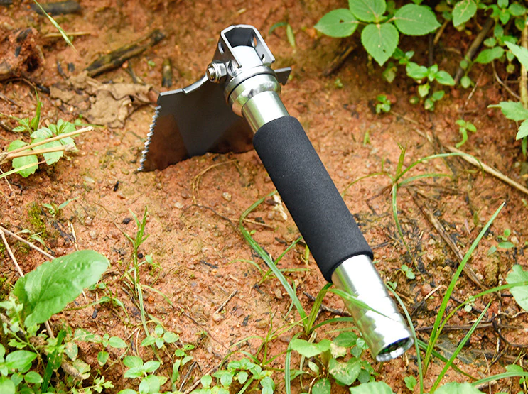 В зависимости от ситуации, туристическая складная лопата может использоваться как мотыга, кирка, пила. Это легкий компактный инструмент, которым удобно копать в тесном пространстве, снять дерн, отпилить сучья.